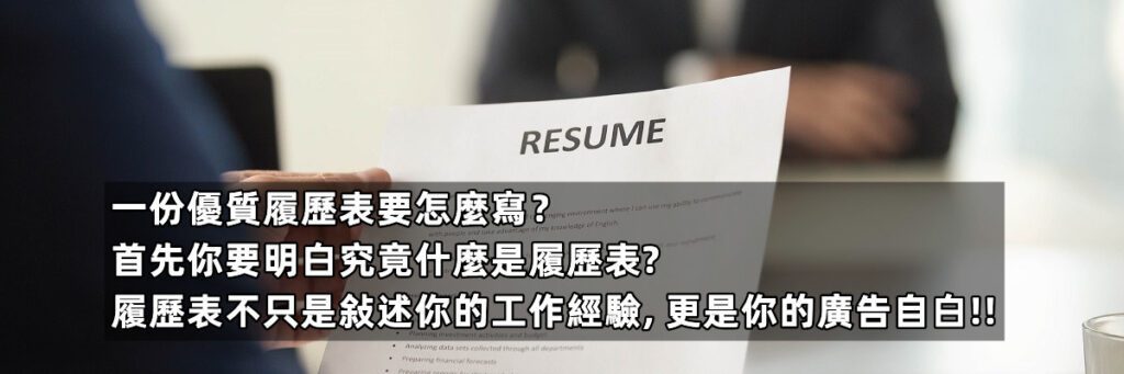 一份優質履歷表要怎麼寫?首先你要明白究竟什麼是履歷表? 履歷表不只是敍述你的工作經驗, 更是你的廣告自白!!